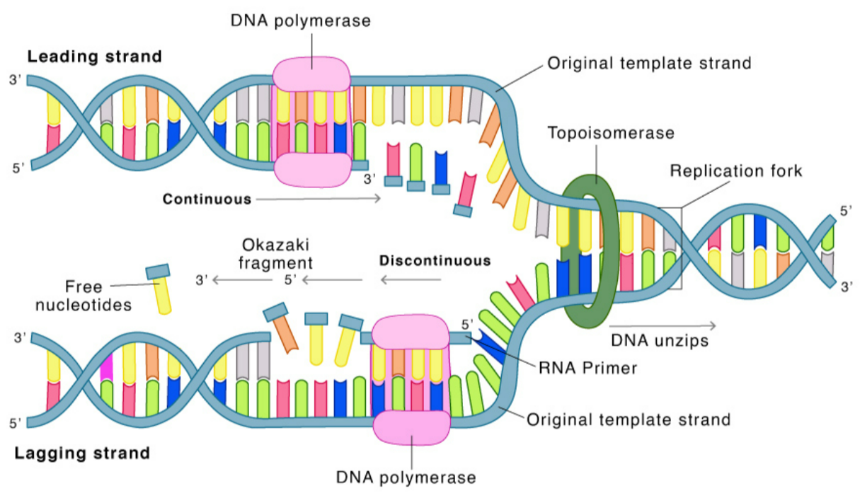 | Joining Fragments | DNA Ligase | Joins Okazaki fragments |