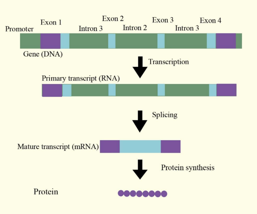DNA → pre-mRNA (contains both exons + introns). - Step 2: Splicing