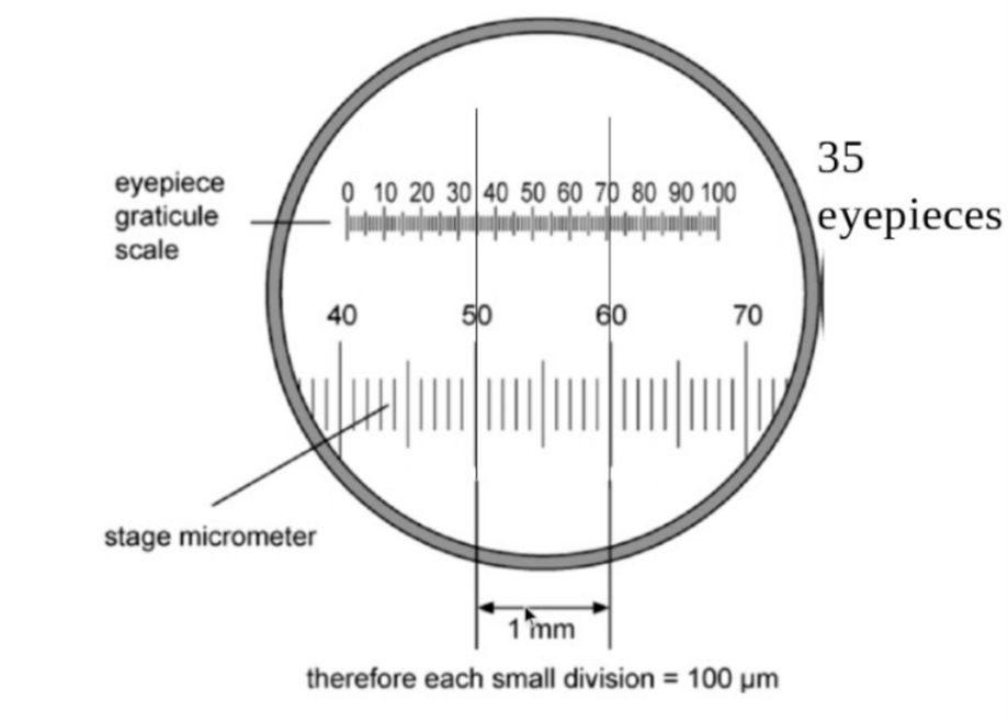 - Use a stage micrometer (e.g., 1 mm = 100 divisions).