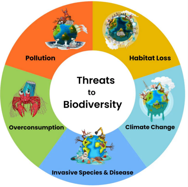 | Human threats | Activities reducing biodiversity | Deforestation, pollution, etc. |