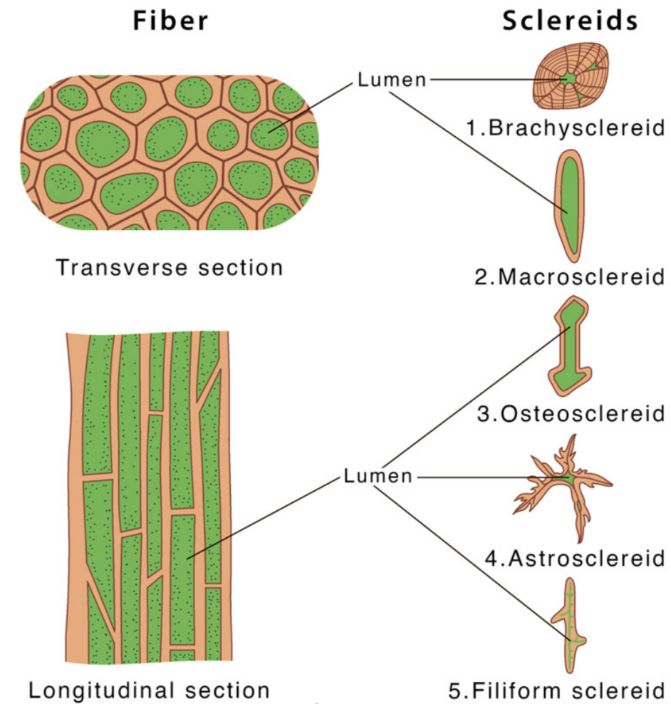 | Sclerenchyma | Found as a cap or sheath around vascular bundles (outermost) | Dead |