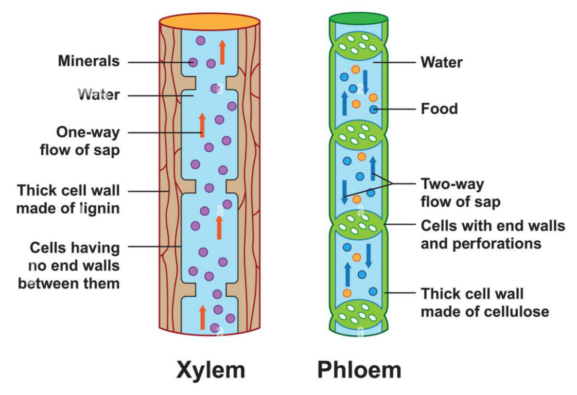 | Special Feature | Long fibres | Continuous hollow tubes | Sieve tubes + companion cells |