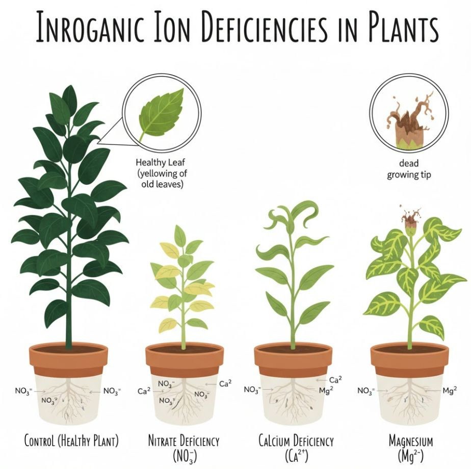 - Ions like nitrate, calcium, and magnesium support growth and photosynthesis.
