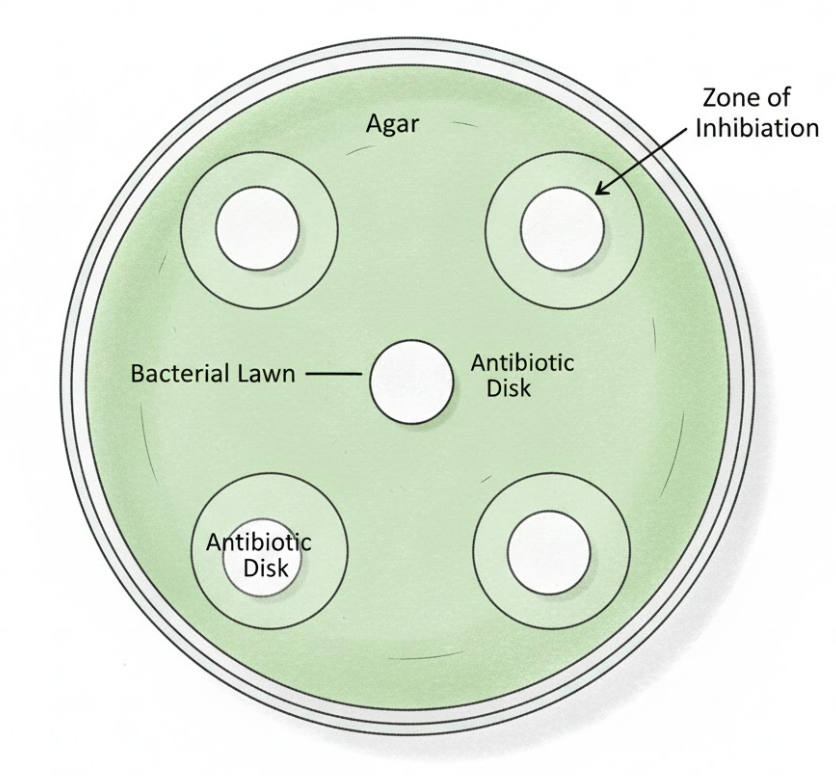 - Negative control: sterile disk with no antibiotic.