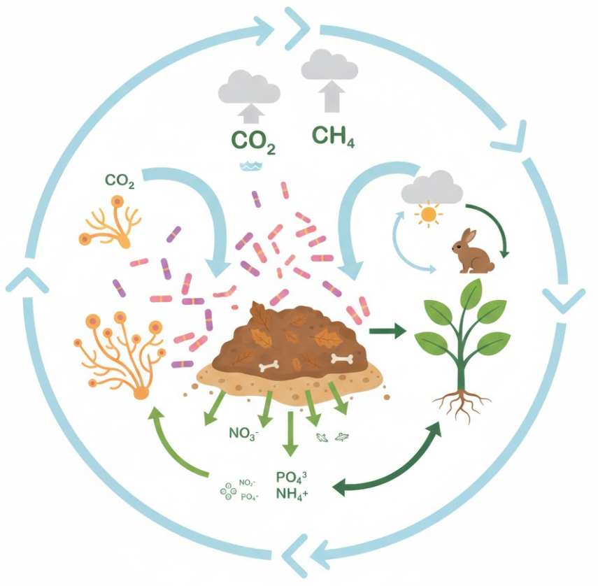 | Soil nutrient release | Mineral ions returned to soil | Supports plant growth |