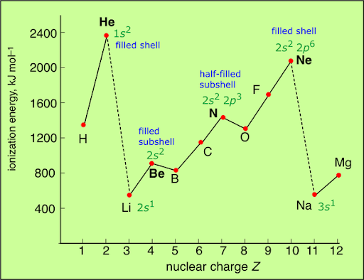 - This electron-electron repulsion reduces the energy required to remove one of the electrons.