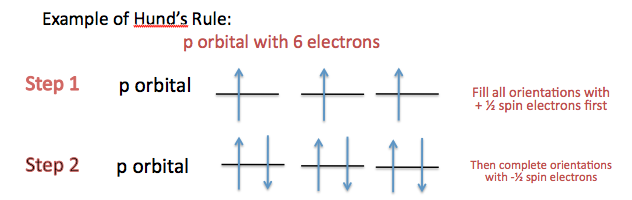 When electrons are placed into orbitals of equal energy (degenerate orbitals), they spread out as much as possible, occupying separate orbitals first.