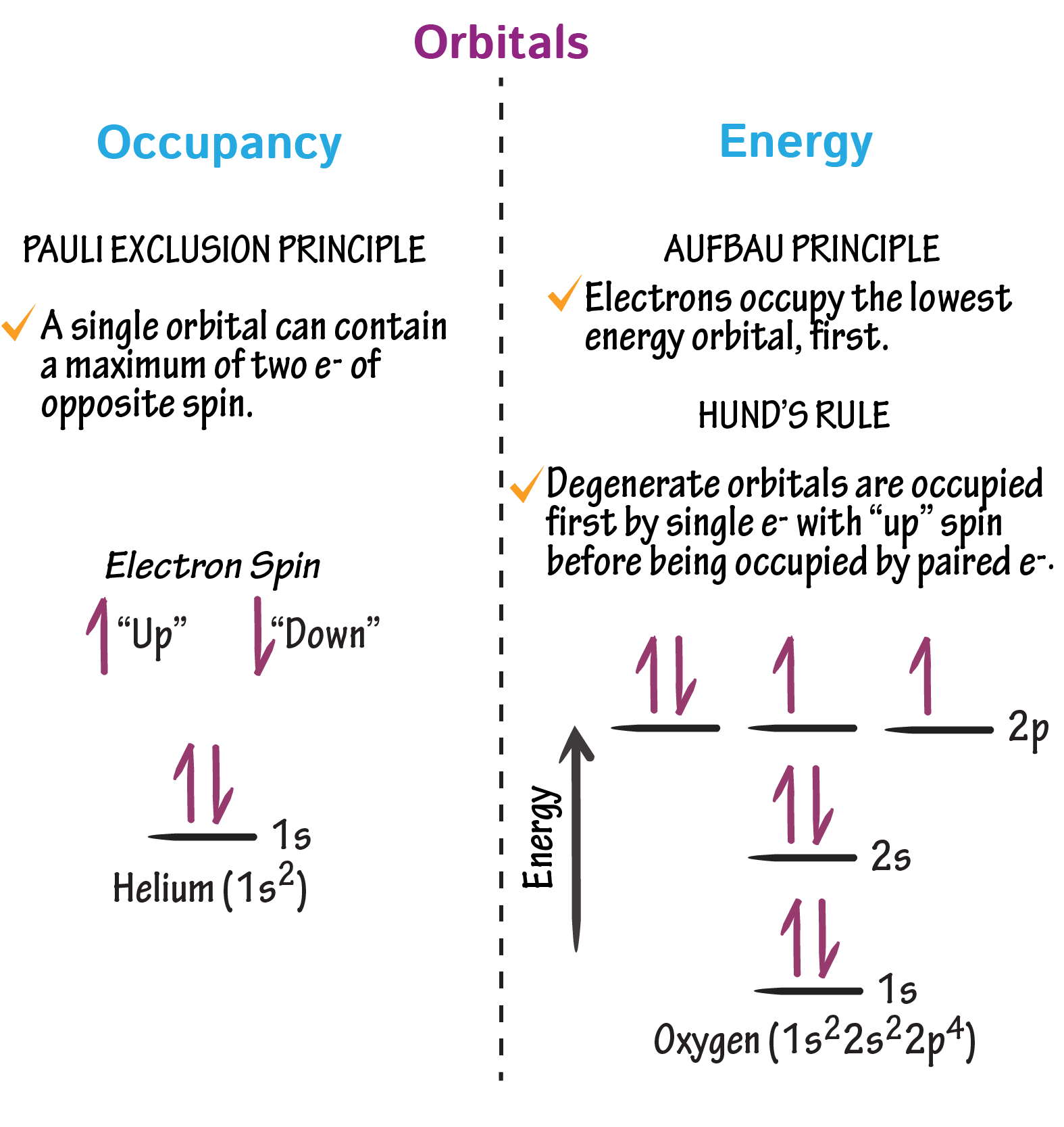 An orbital can hold a maximum of two electrons, and these electrons must have opposite spins.