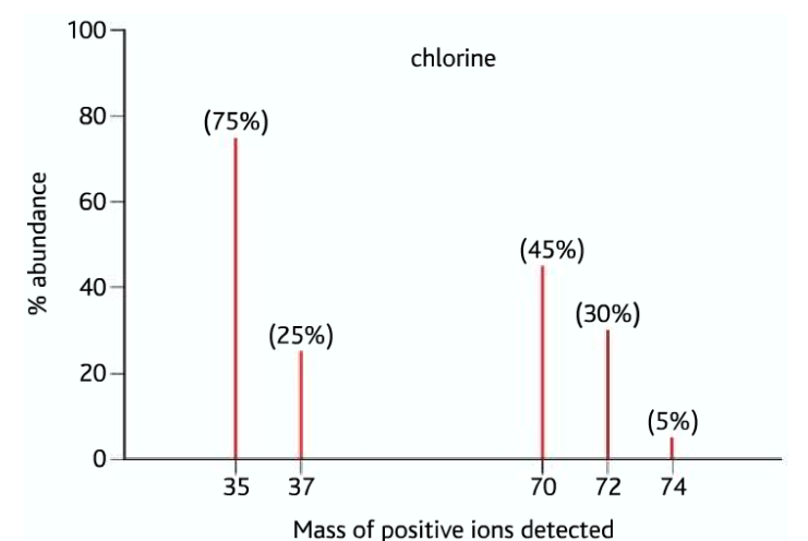 2.7 be able to predict mass spectra, including relative peak heights, for diatomic molecules, including chlorine, given the isotopic abundances