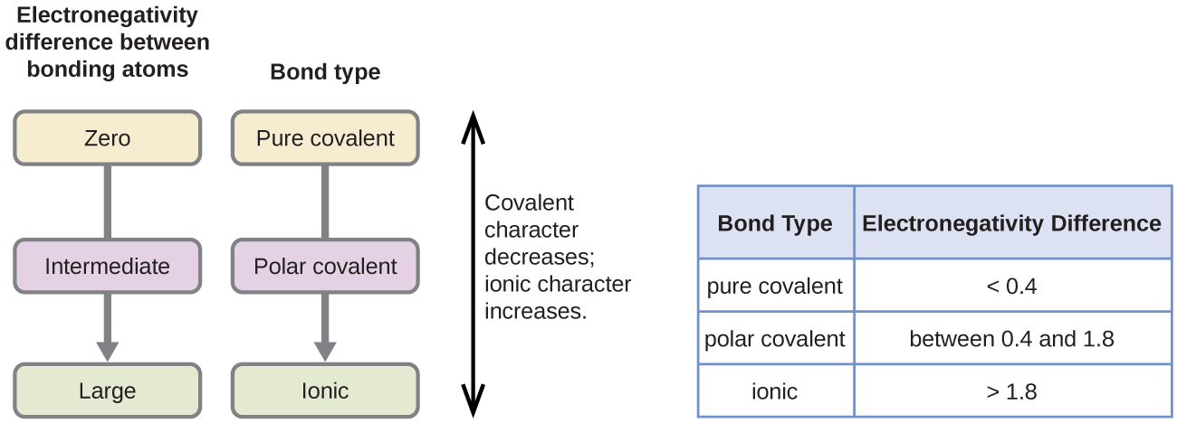 - If the electronegativity difference is zero or very small, electrons are shared equally.