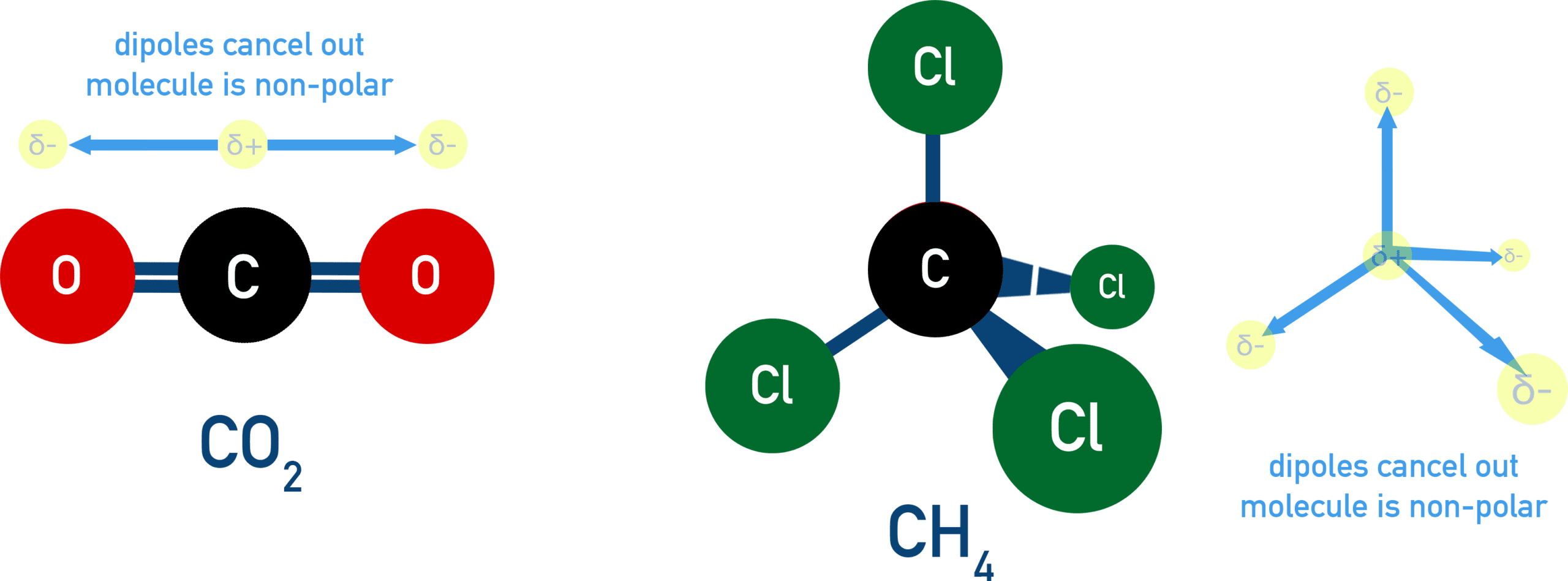 - If polar bonds are arranged symmetrically, their dipoles cancel.