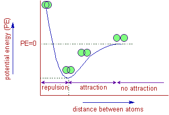 - When atoms are too far apart, attractive forces dominate and pull them closer.