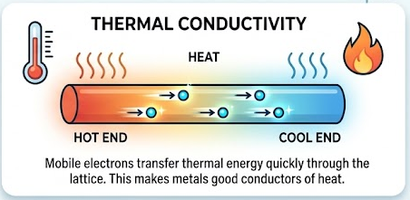 - Mobile electrons transfer thermal energy quickly through the lattice.