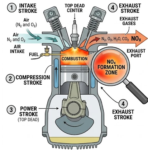 High temperatures in engines cause nitrogen and oxygen in air to react.