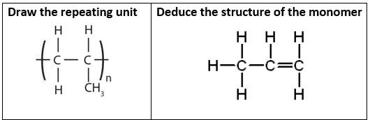 5.7 be able to describe the addition polymerisation of alkenes and draw the repeat unit given the monomer, and vice versa