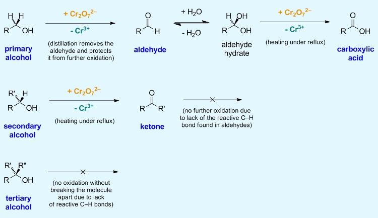 - The type of alcohol determines the oxidation product.