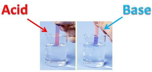 - Blue litmus → red = acid