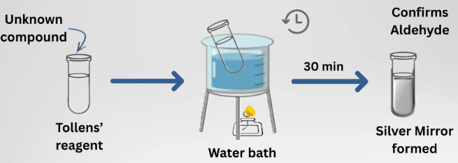 - Tollens’ reagent → silver mirror