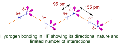 - Strong hydrogen bonding due to very high electronegativity of F.
