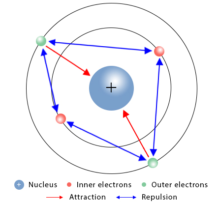 - Reduces effective nuclear attraction.