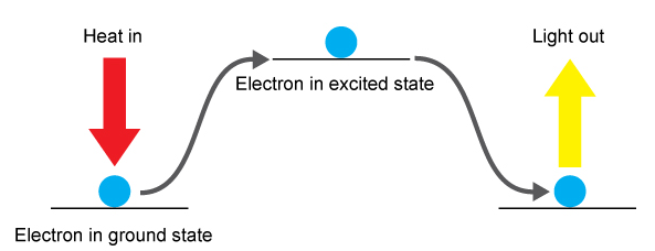 Heat excites electrons in sodium atoms.