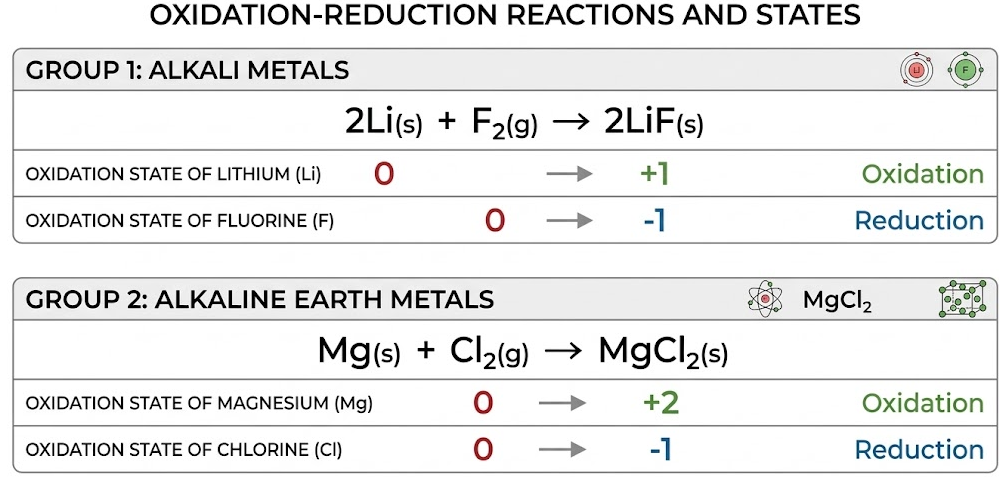 8.26 (i) Oxidation Reactions of Halogens with Group 1 and 2 Metals