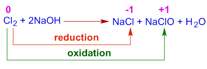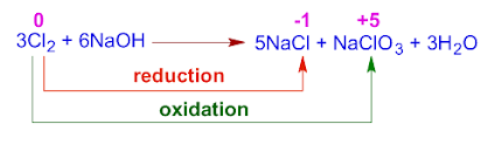 Explain, in terms of oxidation numbers, why the reaction of chlorine with cold NaOH is a disproportionation reaction.