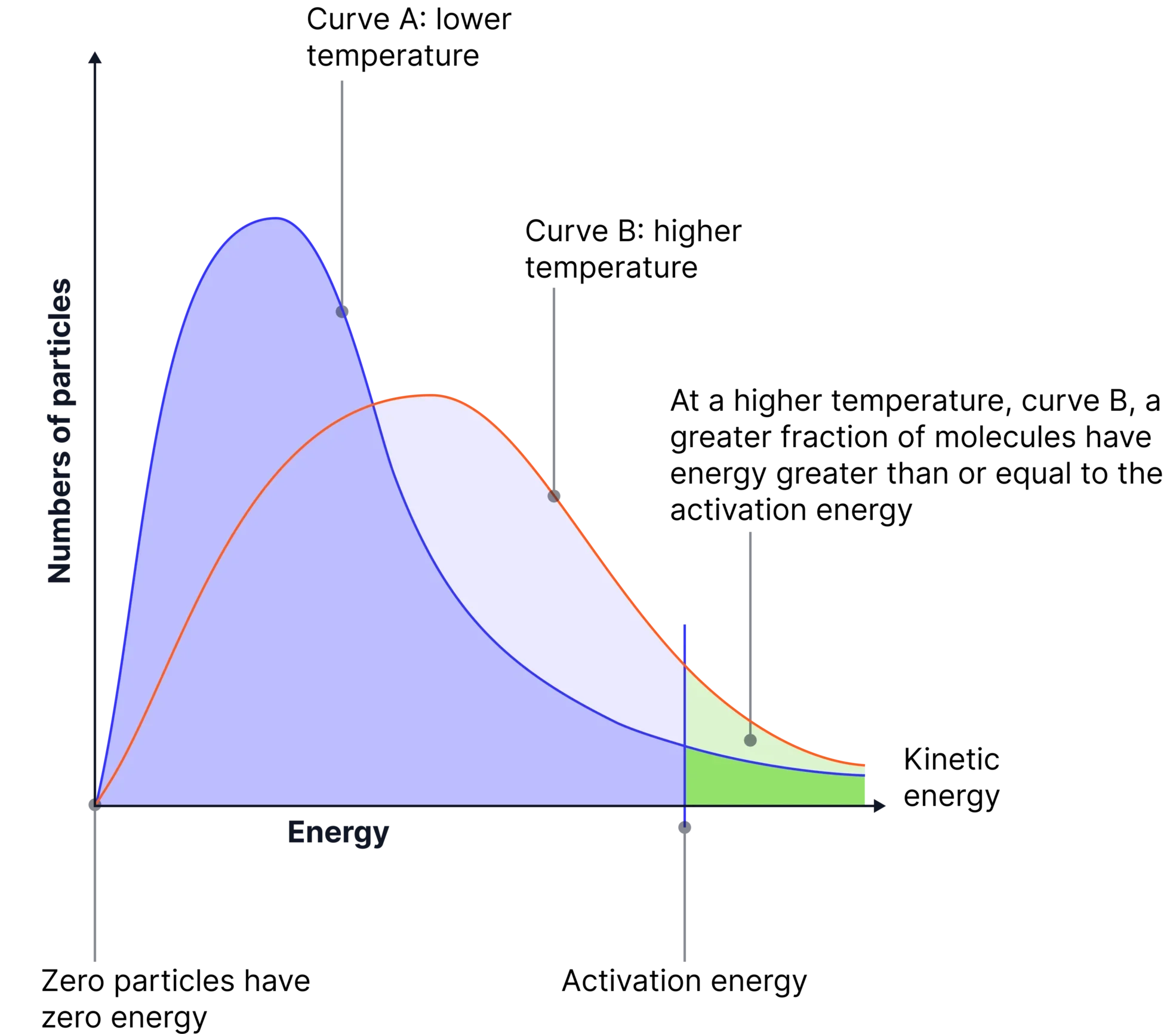 - On the distribution graph, this corresponds to the area to the right of the activation energy line.