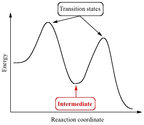 - An intermediate is formed between the steps.