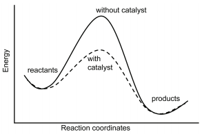 9.6 be able to draw the reaction profiles for uncatalysed and catalysed reactions, including the energy level of the intermediate formed with the catalyst