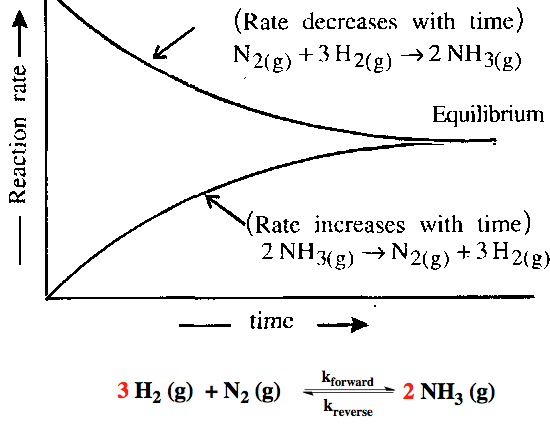 At the same time, the rate of the forward reaction decreases as reactant concentration decreases.