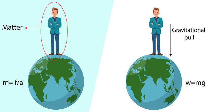 - Weight changes with gravity, but mass stays constant.