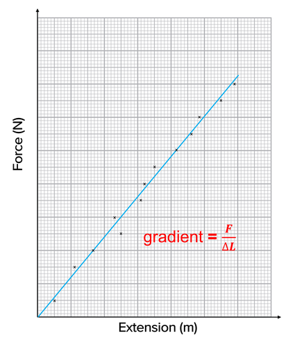 - Plot a graph of F (y-axis) against extension ΔL (x-axis).