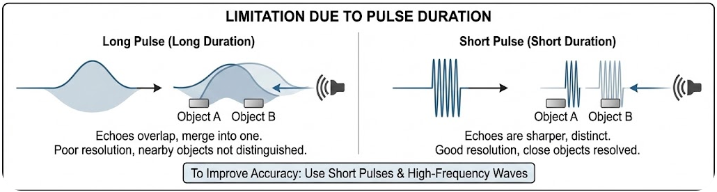 - You cannot distinguish two echoes closer in time than the pulse duration → they overlap.