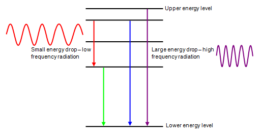 - Explains colours produced by atoms (emission spectra).