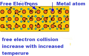 | Metallic conductor | Resistance increases | More lattice vibrations → more electron collisions |