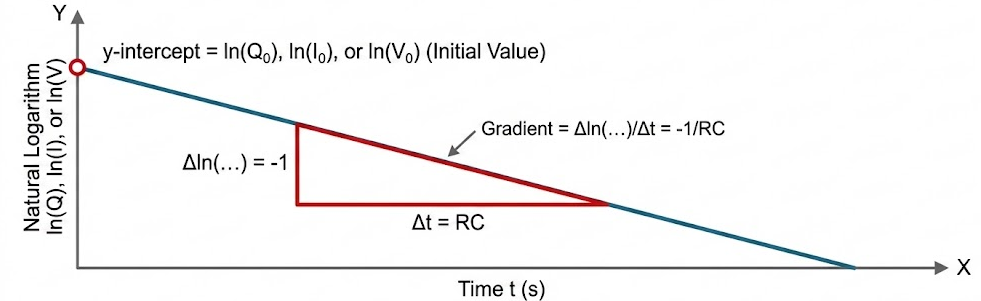 - The gradient is \( -\dfrac{1}{RC} \).