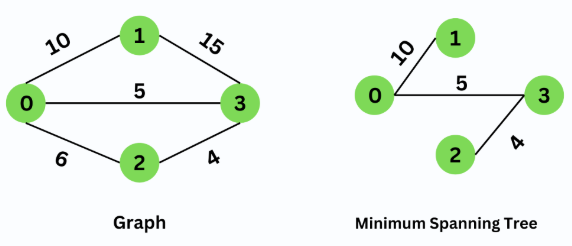 - Repeat until \( \mathrm{n – 1} \) edges are chosen