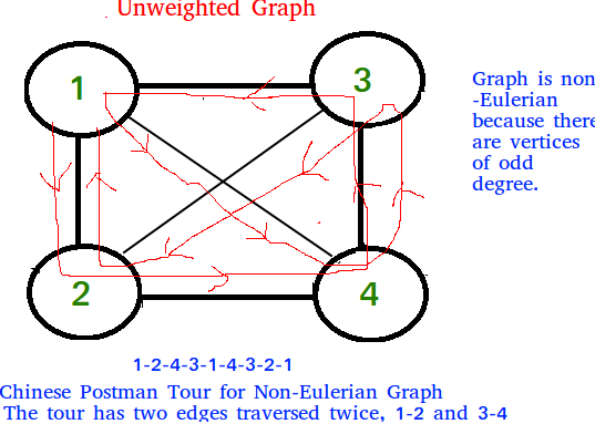 If the network has vertices of odd degree, some edges must be repeated in order to complete such a route.