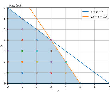 Check integer points in the feasible region:
