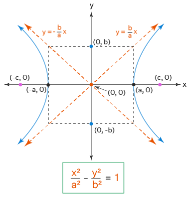 - Asymptotes: \( y = \pm \dfrac{b}{a}x \)