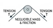 A light smooth pulley has negligible mass and no friction. The tension in the string is the same on both sides of the pulley.