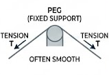 • The string and peg are light and smooth, so the tension is constant.