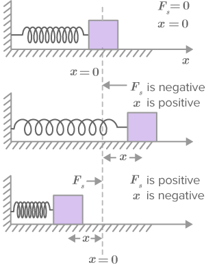 The force due to a spring always acts in the direction that tends to restore the spring to its natural length.