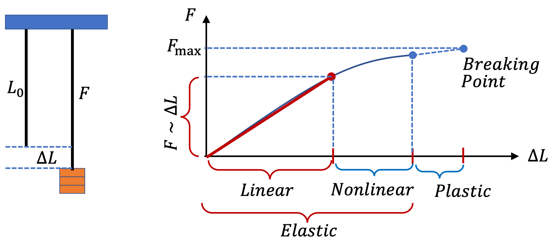 Elastic strings and springs are used to model forces that depend on extension. In this syllabus, motion and equilibrium involving elastic strings and light springs are analysed using simple linear force laws.