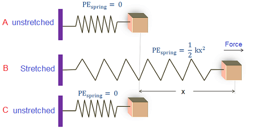 When an elastic string or a spring is stretched, work is done against the elastic force. This work is stored as elastic potential energy.