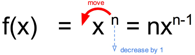 \( \dfrac{d}{dx}(x^n) = nx^{\,n-1} \)