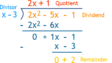 Algebraic division is used to divide a polynomial by a linear expression of the form \( ax + b \) or \( ax – b \). The Remainder Theorem allows us to find the remainder quickly without performing full division.
