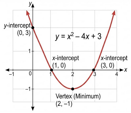 \( y = 2^2 – 4(2) + 1 = -3 \)