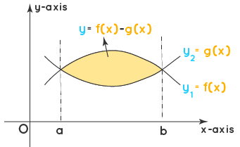 then the area between them from \( x = a \) to \( x = b \) is: